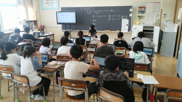 5年1組の5時間目は、社会科の学習でした。暖かい地域と寒い地域のどちらで野菜を育てたいかをこれまで調べてきたことを基にして考えていました。