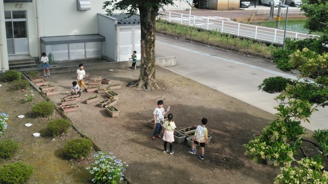 今日もたくさんの1年生がファミリー班のプランターの花に水をあげてくれていました。ありがとうございます。すばらしいです。