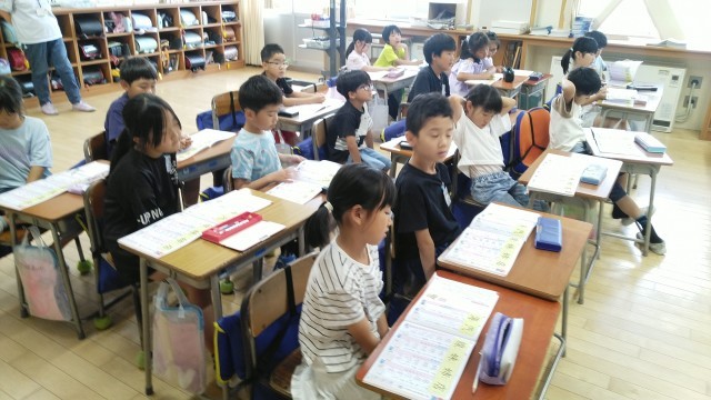 2年生の1時間目は、国語科の学習でした。「汽」や「海」という漢字の練習をしていました。
