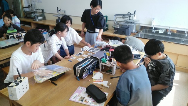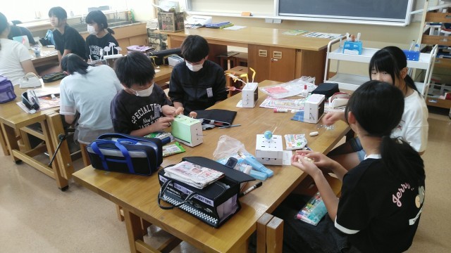 6年生の1時間目は、図画工作科の学習でした。くるくるクランクの作品がだいぶん完成に近付いたみたいです。