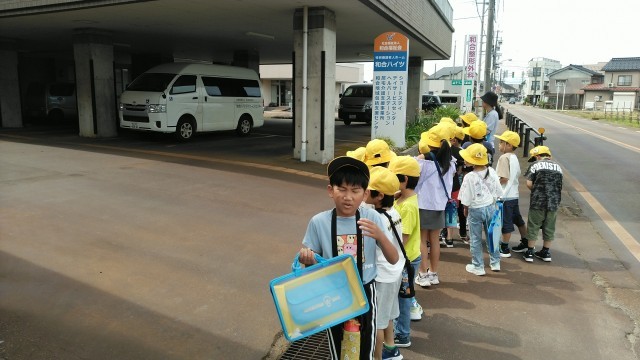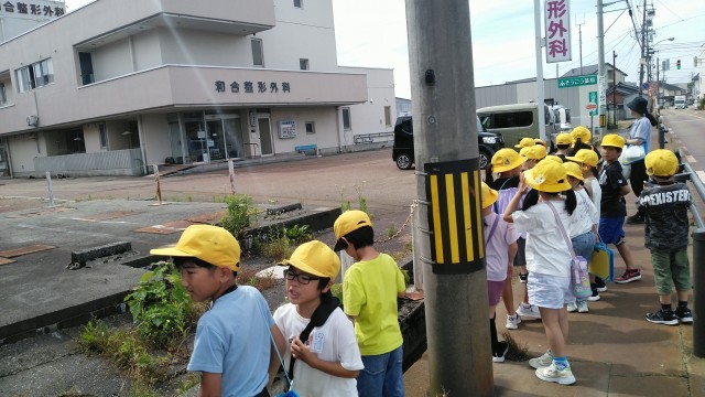 2年生は、9:00から校区探検に出かけました。福祉施設や病院等の前を通りながら布目方面を歩きました。