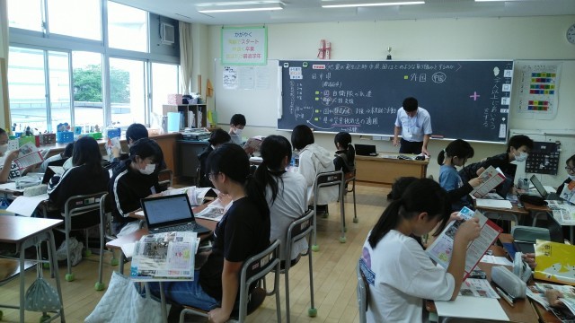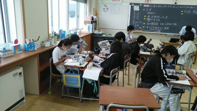 6年生の1時間目は、社会科の学習でした。自衛隊の災害派遣について話し合っていました。