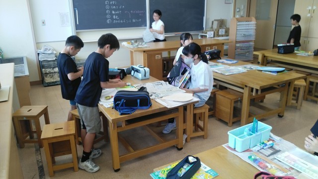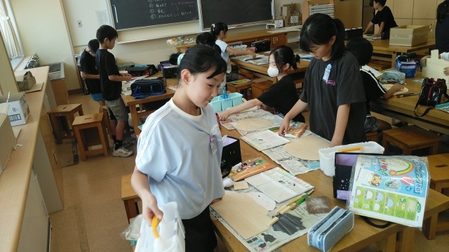 5年1組の3時間目は、図画工作科の学習でした。伝言板をつくっていました。