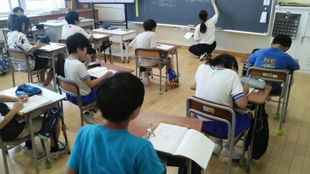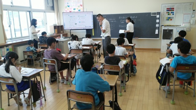 4年生の4時間目は、算数科の学習でした。小数点のある数字について考えていました。新幹線の横幅の1.435mについて考えていました。