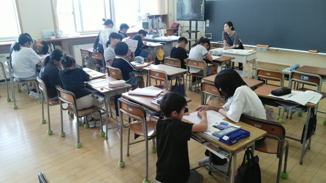 5年1組の5時間目は、算数科の学習でした。計算ドリルやテストの直し等を教え合っていました。