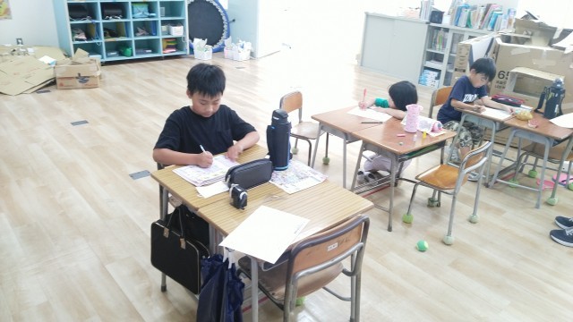 つばめ野級2組の5時間目は、算数科の学習でした。各自がプリントを進めていました。