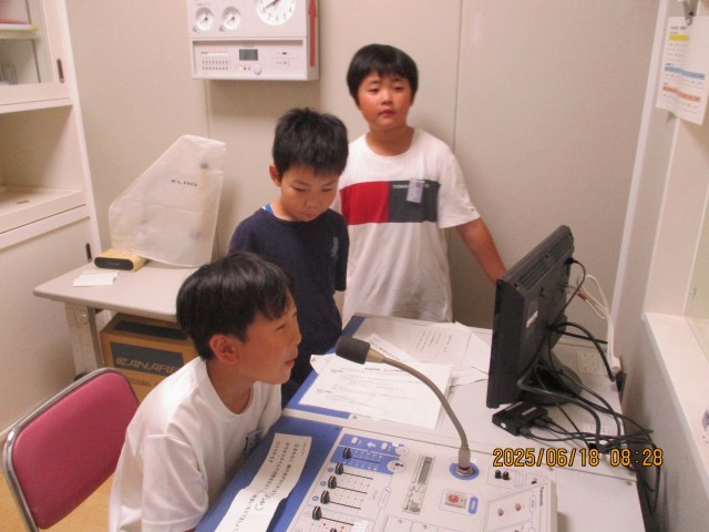 今日から5・6年生は、1泊2日の集団宿泊学習です。毎日、高学年が取り組んでいる活動を4年生が引き継ぎました。挨拶運動や朝の放送等、2日間、学校の最上級生としてやる気いっぱいです。