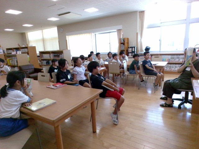 図書室で司書の先生の読み聞かせを楽しんだあと、それぞれ本を借りました。
