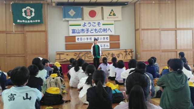 子どもの村の中に入って、入所式を行いました。体表の人の話を聞いたあと、所長さんの話を聞きました。所長さんから牛岳登山を全員できたことをほめていただきました。