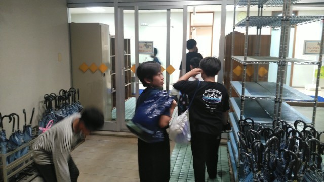 5年生がお風呂に向かいました。6年生は、あがってきました。