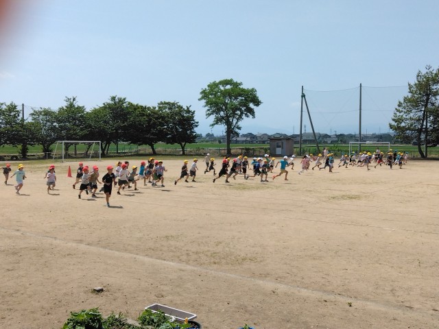 今日のぐんぐんタイムは、色団で走った後、1~4年生全員で一斉に走りました。今日のチャンピオンは4年生だったようです。
