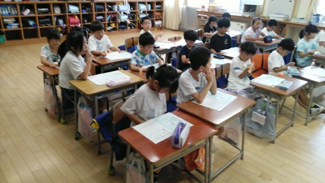 2年生は、1時間目にきらきらタイムのふりかえりをしていました。ワークシートにふりかえりを書いていました。