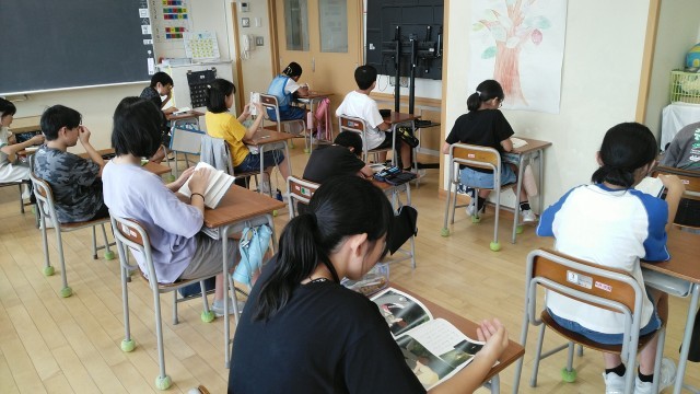 6年生は、5時間目に読書をしていました。