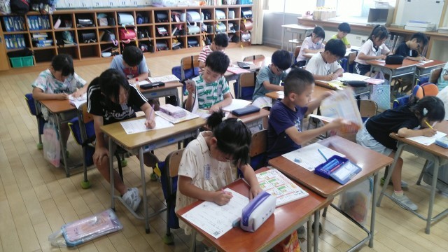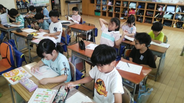 2年生の1時間目は、国語科の学習でした。「スイミー」のワークシートをかいていました。
