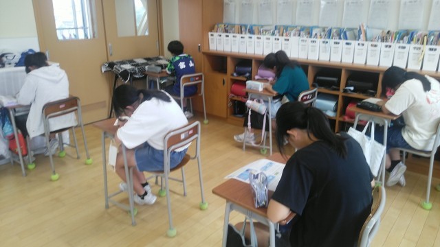 6年生の1時間目は、理科の学習でした。「動物のからだのはたらき」のテストをしていました。終わった人から1学期のふりかえりもかいていました。