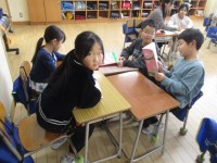 1・2年生は、3時間目にプールに入りました。曇り空でしたが、とても楽しそうに水につかっていました。