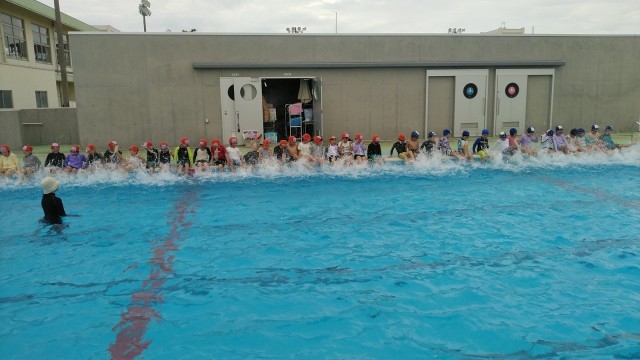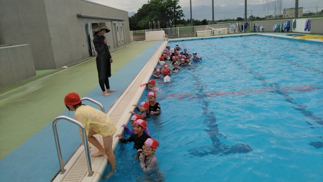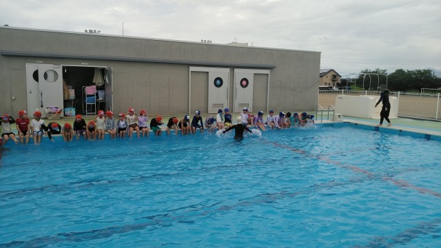 1・2年生は、3時間目にプールに入りました。曇り空でしたが、とても楽しそうに水につかっていました。