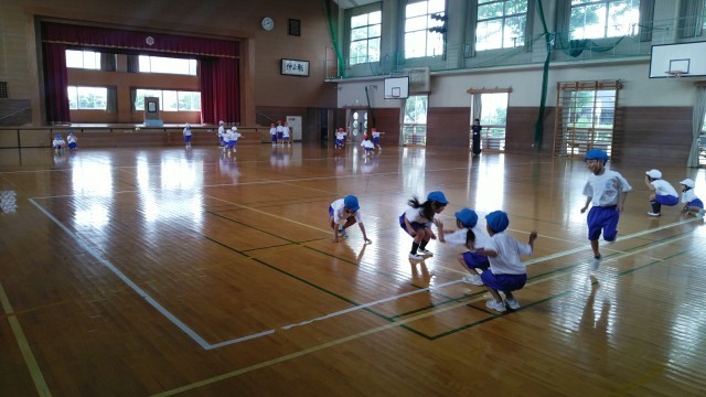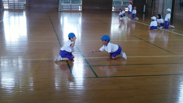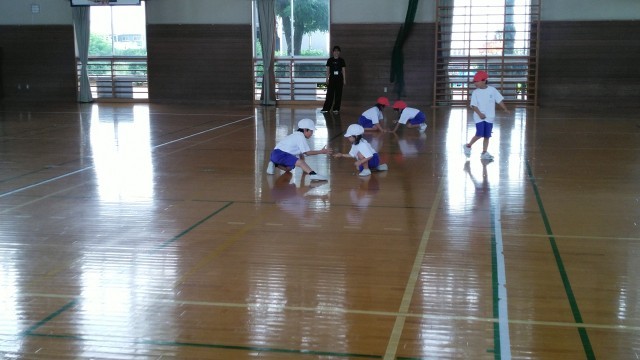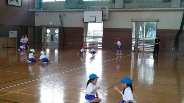 1年生の5時間目は、体育科の学習でした。じゃんけんで陣取りゲームをしていました。