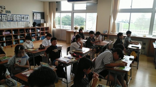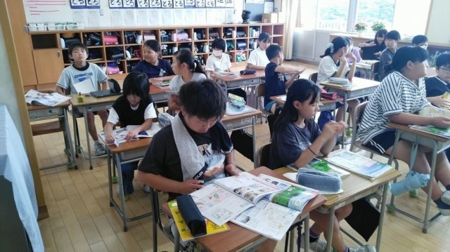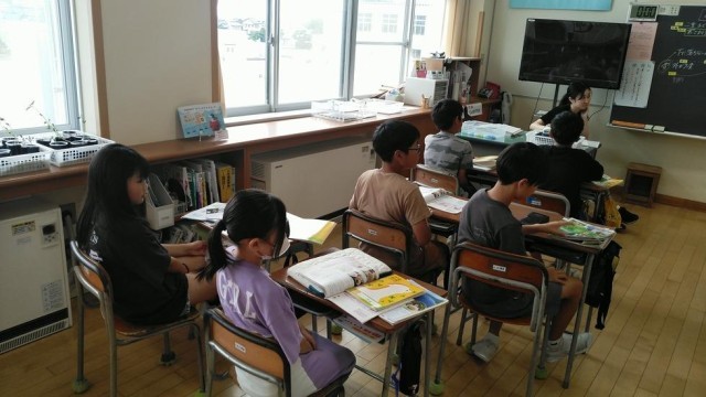 5年1組の5時間目は、社会科の学習でした。北海道と沖縄のどちらで米づくりをしたいかを考えていました。