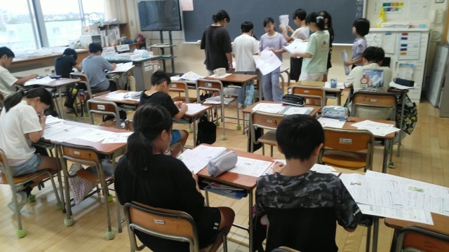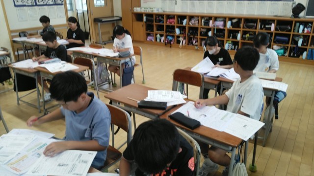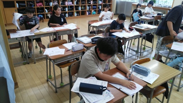 5年1組の1時間目は、国語科の学習でした。テスト直しをしながら、1学期に習ったことを復習していました。