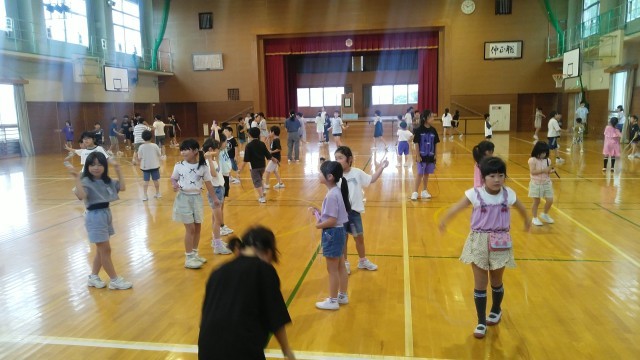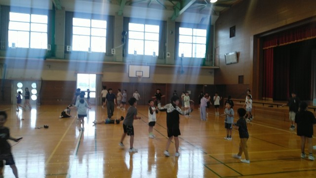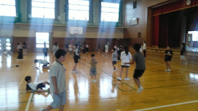雨が降っているので体育館で縄跳びでした。1・3・5年生の様子です。