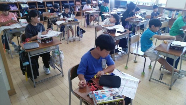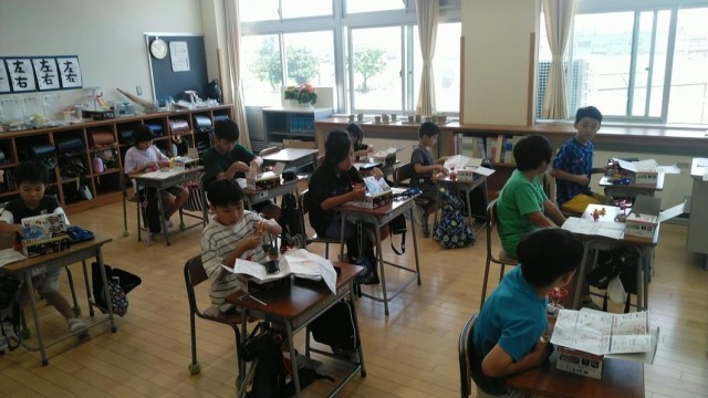 4年生の5時間目は、理科の学習でした。電気のはたらきの実験道具をつくっていました。