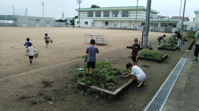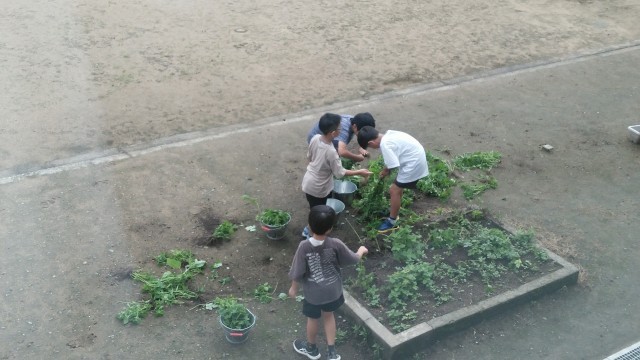 花壇の草むしりをしてくれている3年生がたくさんいました。