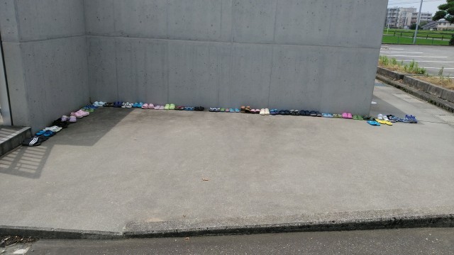 6月27日(金) 1・2年生 きれいです! 公開日 2025/06/27 更新日 2025/06/27 2年 1・2年生がプールに入っている時のサンダル等のはきものです。きれいに並んでいます。すばらしいです。