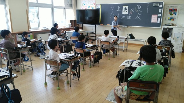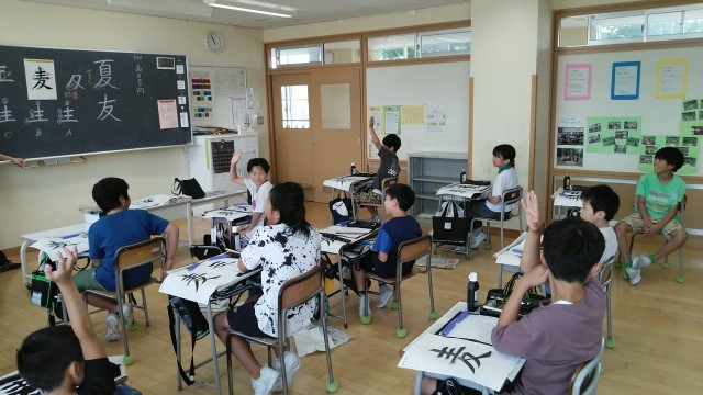 4年生の3時間目は、書写の学習でした。「麦」という漢字を書いていました。