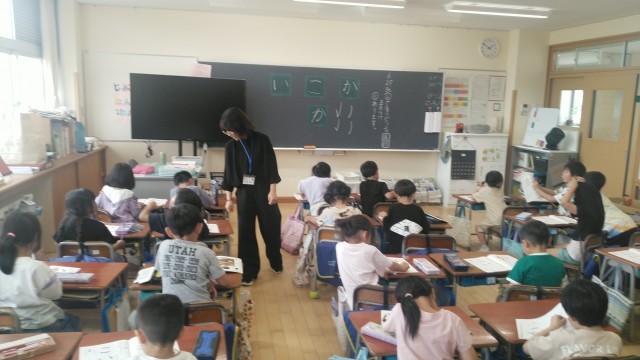 1年生の5時間目は、国語科の学習でした。「い」と「こ」と「か」という文字の練習をしていました。