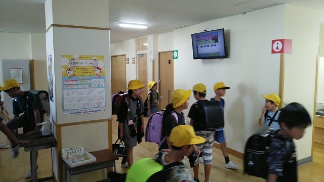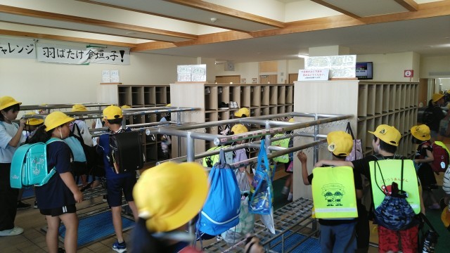 今朝の児童玄関の様子です。晴れの気持ちのよい朝です。子供たちが元気に登校してきました。