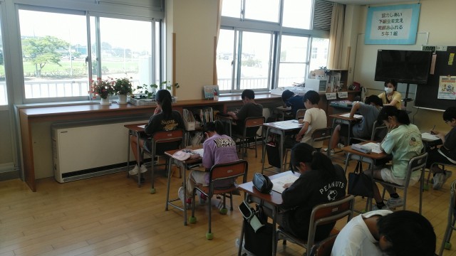 5年1組の1時間目は、社会科の学習でした。「学習のたしかめ」をしていました。
