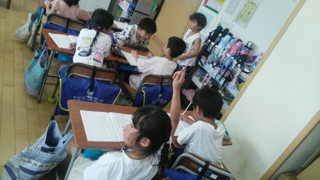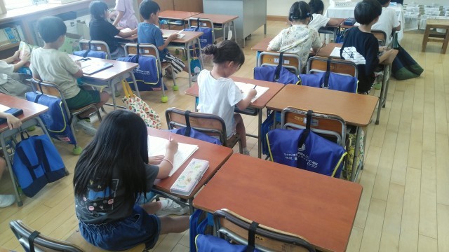 1年生は、5時間目に連絡帳をかいていました。