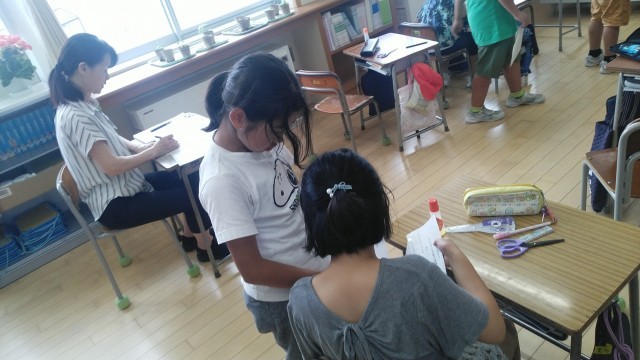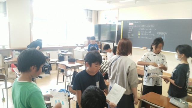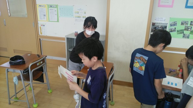 4年生の5時間目は、保健体育の時間でした。養護教諭にも参加してもらって発育や発達について考えていました。