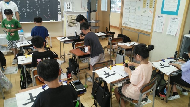 3年生の1時間目は、書写の学習でした。「土」という漢字を書いていました。