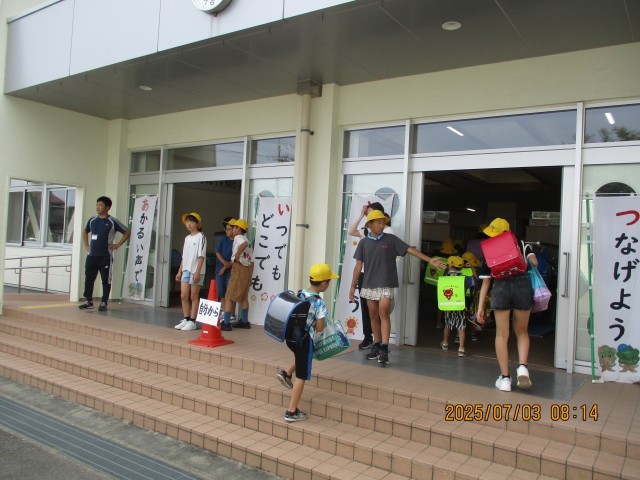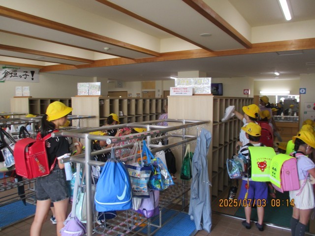 今朝の児童玄関の様子です。子供たちが元気に登校してきました。