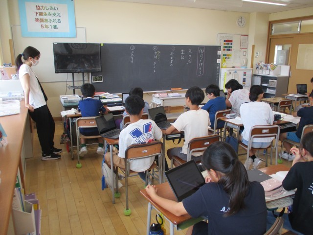 5年1組の1時間目は、国語科の学習でした。俳句を考えていました。