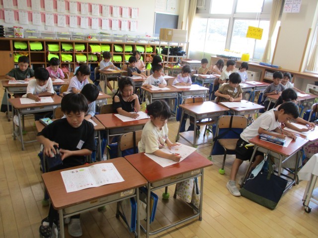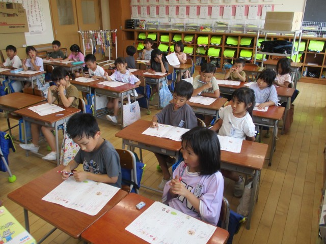 1年生の5時間目は、国語科の学習でした。学習のたしかめの直しをしていました。