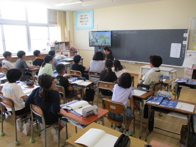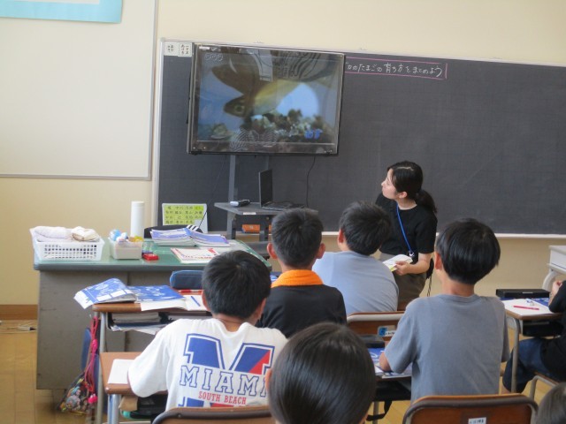 5年1組の5時間目は、理科の学習でした。メダカの産卵の動画を見ていました。