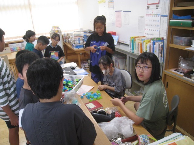 7月9日(水) 今日のきらきらタイム(しおりの材料) 公開日 2025/07/09 更新日 2025/07/09 学校から 今度、縦割り班で活動する「しおりづくり」の材料になるペットボトルのふたを細かく切ってくれていました。