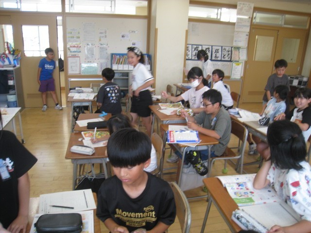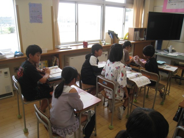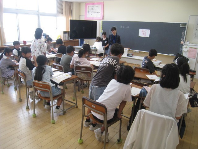 5年2組の5時間目は、家庭科の学習でした。これから「ティッシュケース」か「バッグ」みたいなものを縫ってつくるみたいです。
