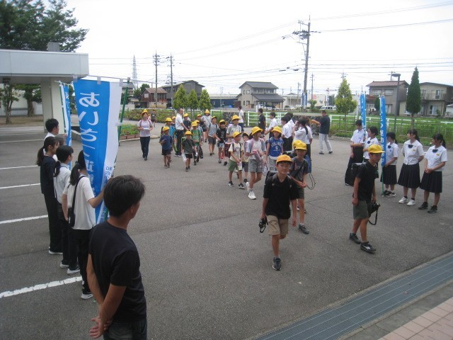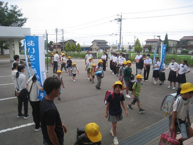 今朝の児童玄関の様子です。今日も和合地区小中学校PTA連絡協議会の「小中合同挨拶運動」が行われました。本校の卒業生である中学生(1~3年生)と中学校の先生方、PTAの代表の方が本校の児童や職員と一緒に挨拶運動をしてくれました。2日間、ありがとうございました。第2回の小中合同挨拶運動は、10月29日(水)~30日(木)の予定です。
