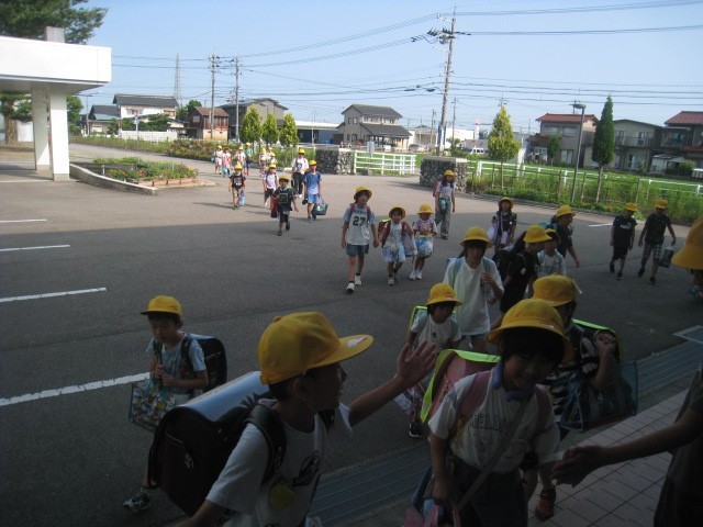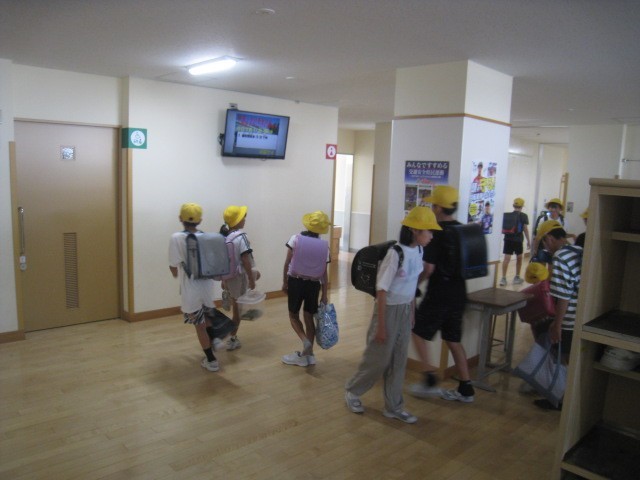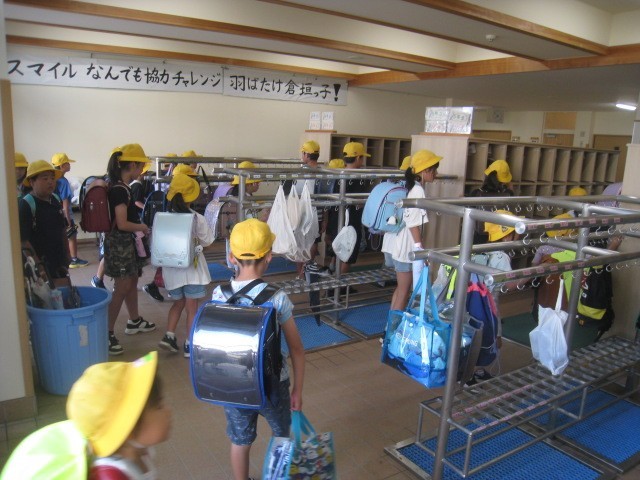 今朝の児童玄関の様子です。子供たちが元気に登校してきました。児童玄関のミストを気持ちよさそうに通って学校に入っていきました。