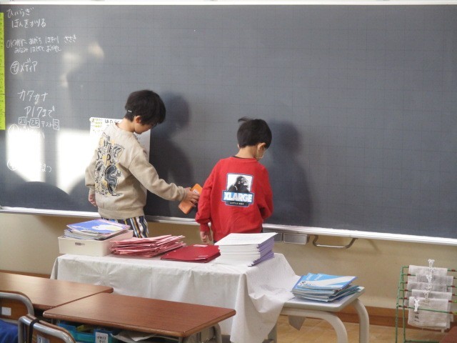 登校してすぐに、誰かのために動いてくれています。すてきな倉垣っ子です。