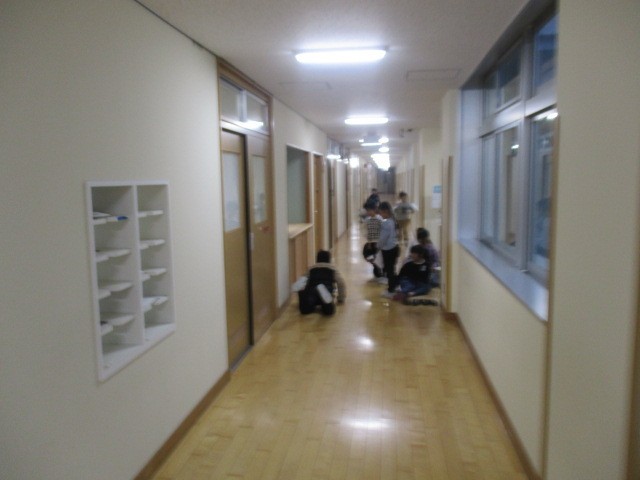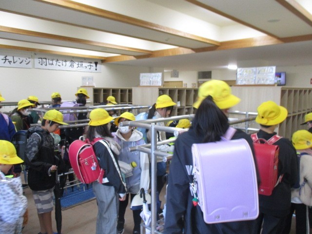 今朝の児童玄関の様子です。曇り空です。天気予報では雪マークも…。子供たちが元気に登校してきました。