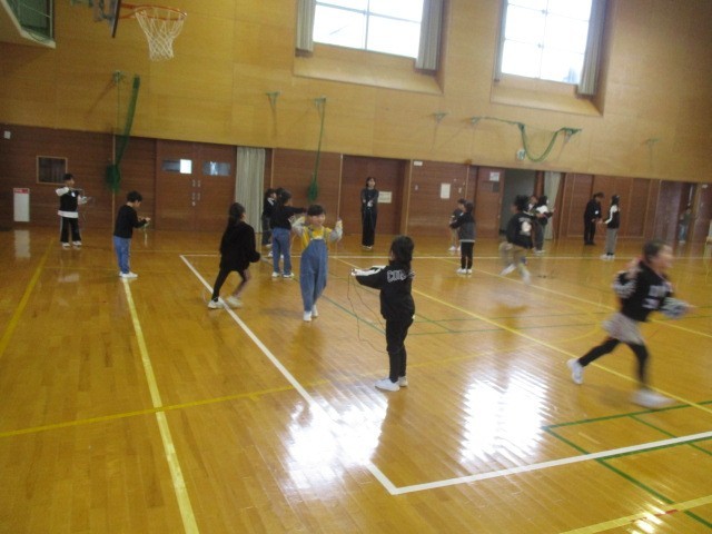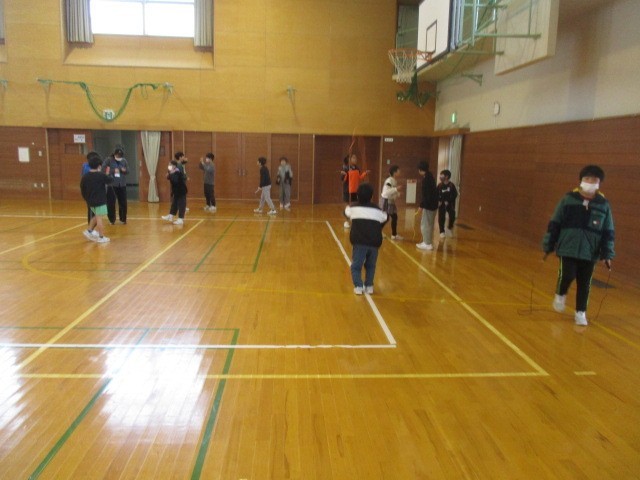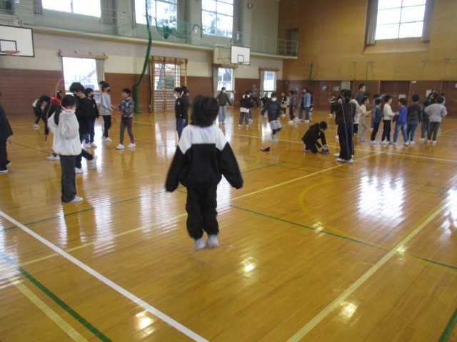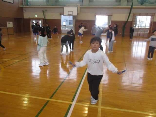 今日のぐんぐんタイムは、体育館で縄跳びでした。1・3・5年生の様子です。