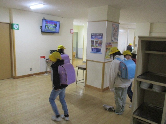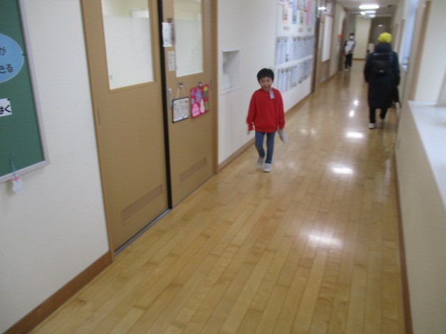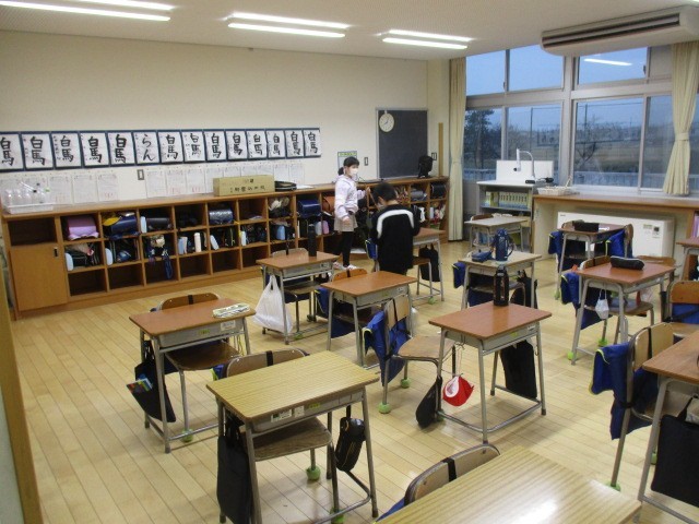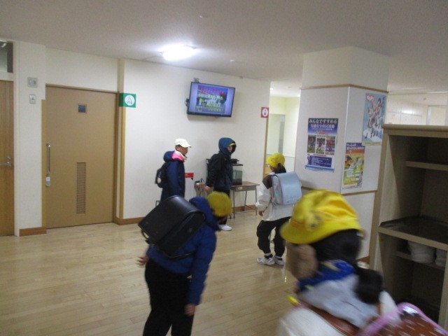 今朝の児童玄関の様子です。雪は降っていません。寒いですが、子供たちの挨拶は元気です。