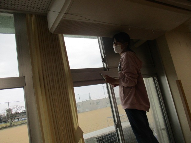地震や津波を想定した避難訓練を行いました。11月に全校児童や全職員分のライフジャケットがそろったので、全員着用して屋上に避難しました。