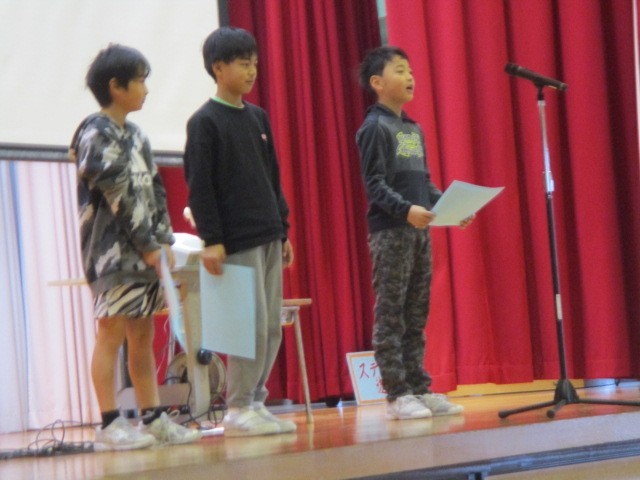 終業式のあと、2学期がんばったことの発表がありました。3年生と4年生の代表の人が発表してくれました。