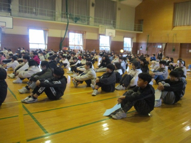 インフルエンザ等での延期もあって、今月2回目の避難訓練がありました。今回は、休み時間中の地震の避難訓練でした。みんな真剣に取り組んでいました。
